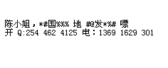 陈小姐,*#国%%% 地 #@发*%# 嘌 开 Q:254 462 4125 电:1369 162...